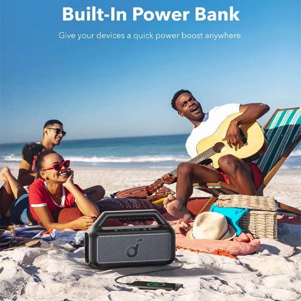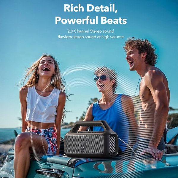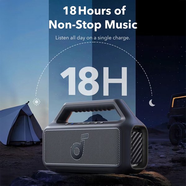 רמקול נייד Soundcore Boom 2 SE עם עוצמת סאונד 30W, עמידות למים IPX7, זמן נגינה עד 18 שעות*, אקולייזר מותאם אישית עם טכנולוגייתBassUp להדגשת עוצמת הבס.