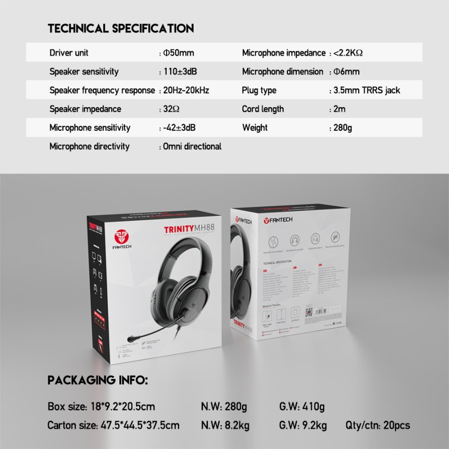 אוזניות הגיימינג FANTECH TRINITY MH88 הן אוזניות חוטיות בסיסיות-בינוניות שמיועדות לגיימרים שמחפשים פתרון פשוט, נוח וזול יחסית עם תאימות רחבה לכל הפלטפורמות.