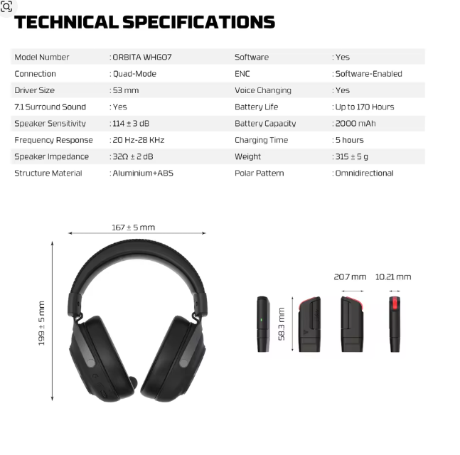 ה-Orbita WHG07 מציע קישוריות מרובעת מצבים: אלחוטית 2.4GHz, Bluetooth, USB-A קווית ו-TRRS קווית 3.5 מ"מ.